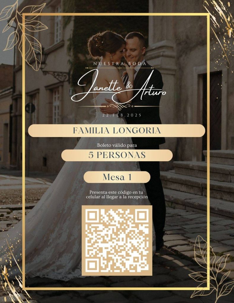 ESTA INVITACIÓN INCLUYE 100 BOLETOS QR PERSONALIZADOS COMO ESTE: